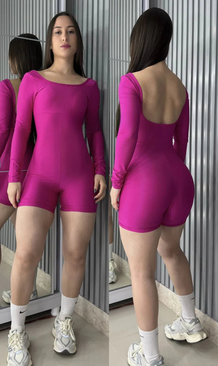 Macaquinho Shine manga longa poliamida aveludado